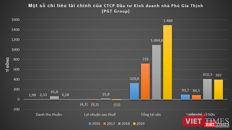 Dữ liệu của VietTimes cho thấy, trong giai đoạn 2016 - 2019, PGT Group (công ty mẹ) chỉ báo lãi duy nhất một lần vào năm 2018, với mức lãi sau thuế 15,8 tỉ đồng. Đây cũng là năm công ty này ghi nhận doanh thu thuần vượt trội hơn hẳn, đạt 65,8 tỉ đồng.