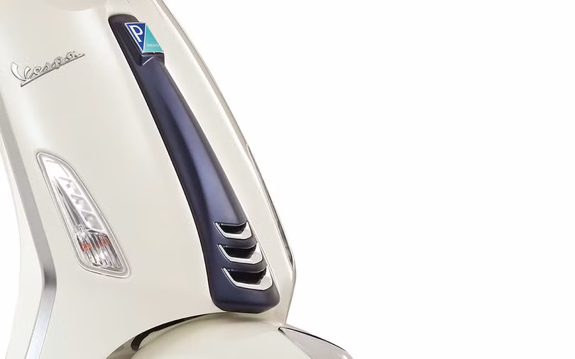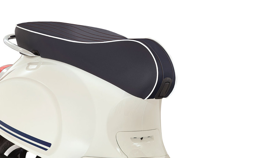Điểm nhấn của phiên bản đặc biệt Vespa Primavera Yacht Club chính là thiết kế yên xe màu xanh đặc trưng kết hợp hài hòa cùng đường vân nổi và viền trắng cá tính nổi bật trên nền xe màu trắng huyền thoại.