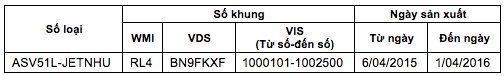 Toyota Việt Nam sẽ tiến hành cập nhật phần mềm bộ điều khiển động cơ của các xe Camry 2.0E nằm trong dải ảnh hưởng cụ thể như sau: