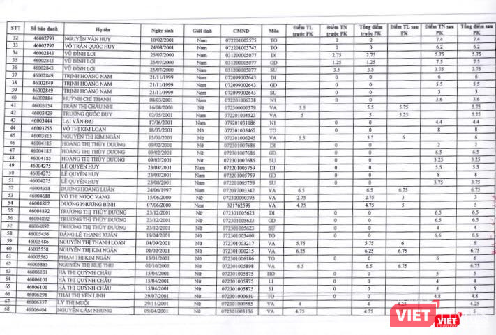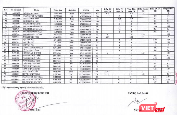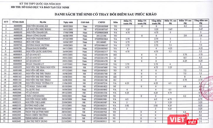 Danh sách 95 thí sinh thay đổi điểm thi sau phúc khảo tại tỉnh Tây Ninh.