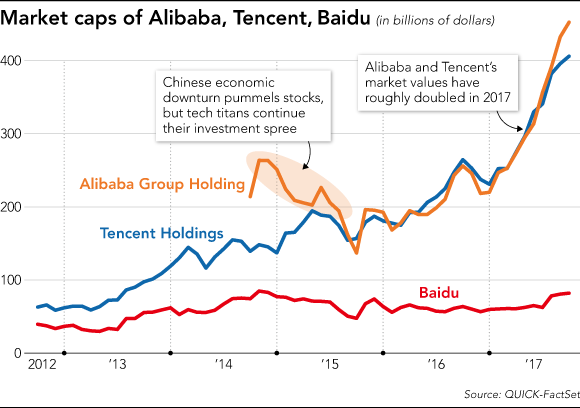 Giá trị thị phần của Alibaba, Tencent, Baidu