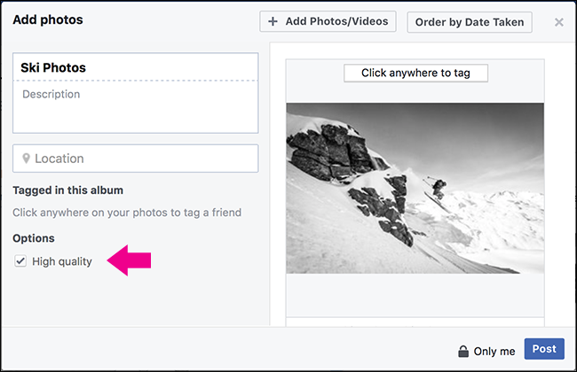 Vì vậy, nếu bạn muốn có bức ảnh chất lượng cao nhất có thể trên Facebook, tốt nhất bạn hãy tải hình ảnh lên album ảnh rồi chia sẻ chúng từ đó. Khi bạn thêm hình ảnh vào album, để tải chúng lên chất lượng cao, hãy nhớ chọn vào tùy chọn "Chất lượng Cao". Bạn cũng có thể đặt tùy chọn này mặc định trên smartphone.