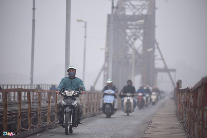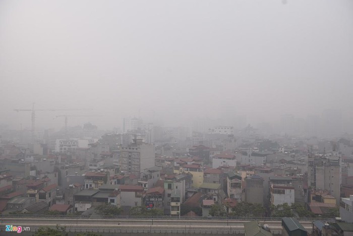 Cảnh mịt mù tại khu vực thuộc các quận Tây Hồ, Hoàn Kiếm, gần sông Hồng.