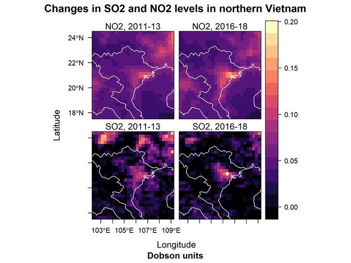 “Dữ liệu cho thấy phát thải ở khu vực quanh Hà Nội... tăng khoảng gấp đôi, phù hợp với mức tăng lượng sử dụng than cũng trong khoảng thời gian này. Mô hình trên không bàn về chất lượng không khí dưới mặt đất, vì nồng độ SO2 và NO2 nói trên là nồng độ “trong khí quyển”, khác với nồng độ “trên mặt đất”, ông Myllyvirta nói.