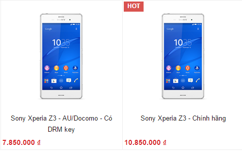Ví dụ chiếc Xperia Z3 đang được Sony niêm yết ở Việt Nam khoảng 10,8 triệu đồng, nhưng giá của bản xách tay chỉ có tầm 8,5 triệu đồng.