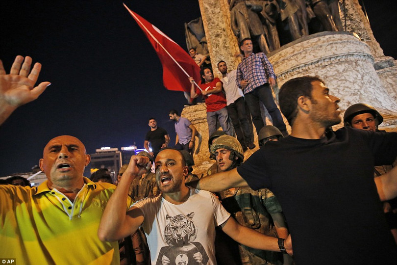 Người dân theo yêu cầu của tổng thống Erdogan bao vây phong tỏa các binh sĩ đảo chính