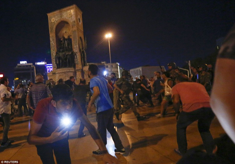 Binh sĩ thuộc lực lượng đảo chính chiếm giữ quảng trường Taksim, Istanbull