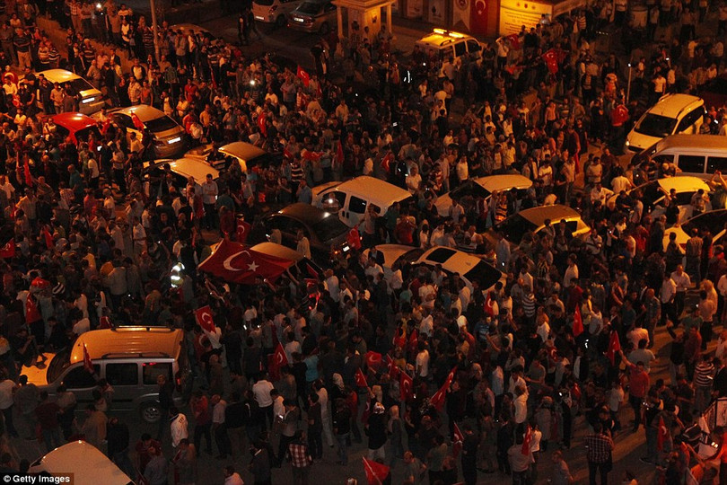 Người dân tràn ngập ra đường phố đúng theo yêu cầu xuống đường của tổng thống Erdogan