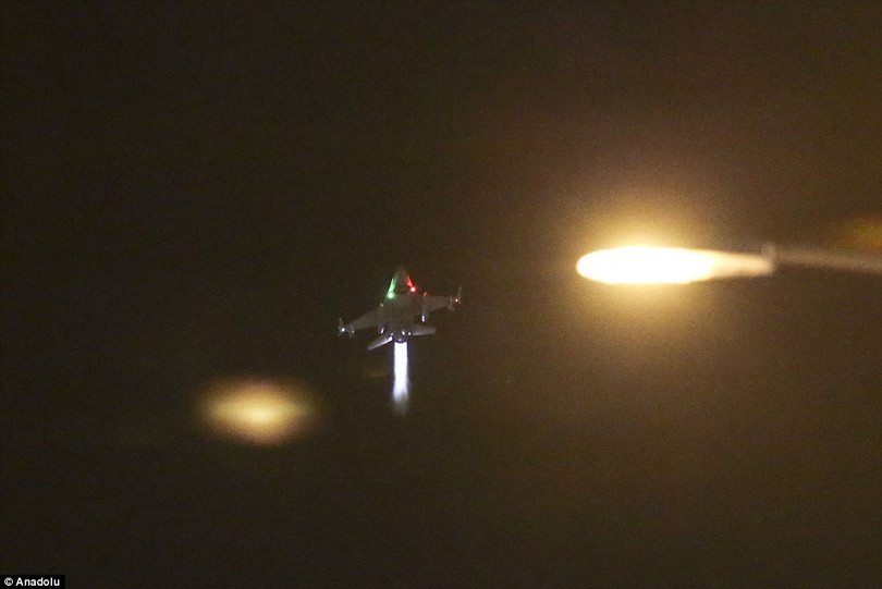Máy bay chiến đấu bay trên bầu trời đêm Istanbul