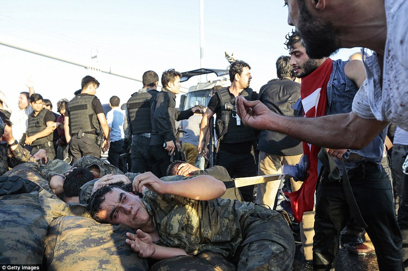 VietTimes -- Binh lính Thổ Nhĩ Kỳ đầu hàng trên cầu Bosphorus sau cuộc đảo chính bất thành, khoảng 200 người thiệt mạng. Tổng thống Erdogan trở về trong chiến thắng tại Istanbul sau khi lực lượng an ninh dập tắt cuộc đảo chính, ông cảnh báo các thành viên quân đội đứng sau âm mưu lật đổ phải trả giá rất đắt vì tội phản quốc.