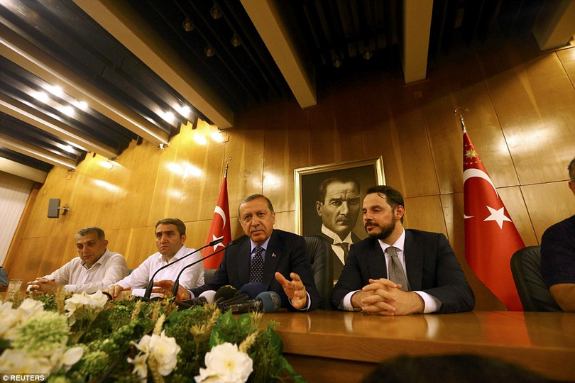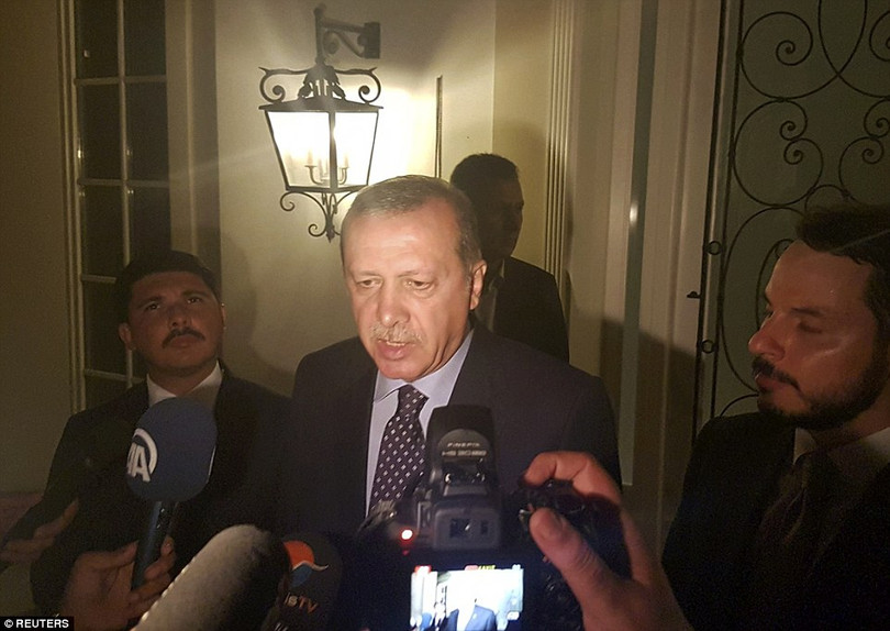Tổng thống Erdogan tổ chức một cuộc họp báo bên ngoài một khách sạn ở khu resort Marmaris, tuyên bố thề sẽ trả thù