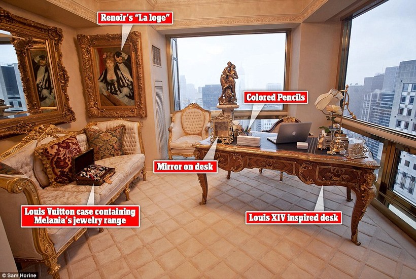 VietTimes -- Căn hộ 3 tầng penthouse sang trọng của gia đình Trump khiến ai cũng phải ngỡ ngàng vì toàn bộ tường, nền nhà và các cột trụ bên trong căn penthouse đều được làm bằng đá cẩm thạch, phần nội thất được dát vàng 24 carat.