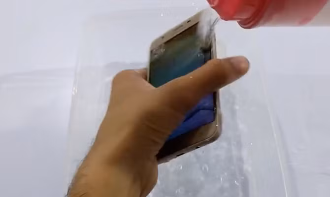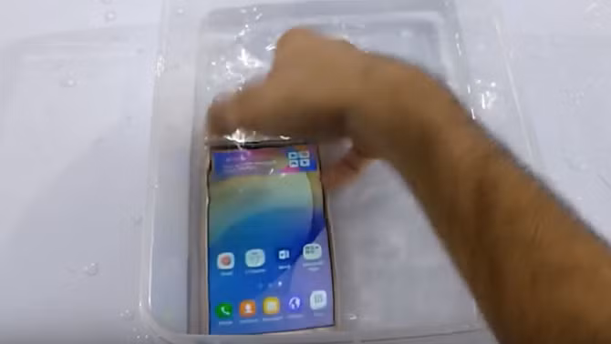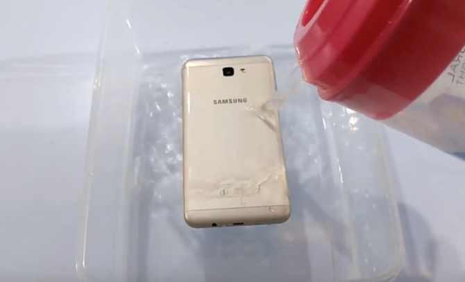 VietTimes -- Kênh YouTube Unbox Extinction vừa đăng tải video mô tả cảnh chiếc Galaxy J7 Prime "tắm rửa", liên tiếp bị dội nước, thậm chí bị dìm ngập nước nhiều lần. Kết quả là Galaxy J7 Prime vẫn hoạt động bình thường khi thử bật các tính năng camera, loa ngoài, cảm ứng của máy vẫn mượt mà sau khi lau sơ qua.