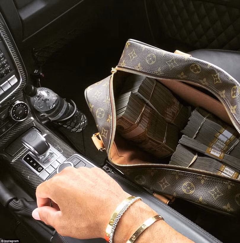 Trong khi đó, người mẫu kiêm diễn viên Danny Agha muốn cho cả thế giới thấy sự giàu có của mình với ảnh chiếc túi Louis Vuitton nhồi chặt tiền mặt và chiếc vòng đeo tay Cartier Love kèm lời chú thích có vẻ không mấy liên quan: “Tôi chỉ mới 23 tuổi”.