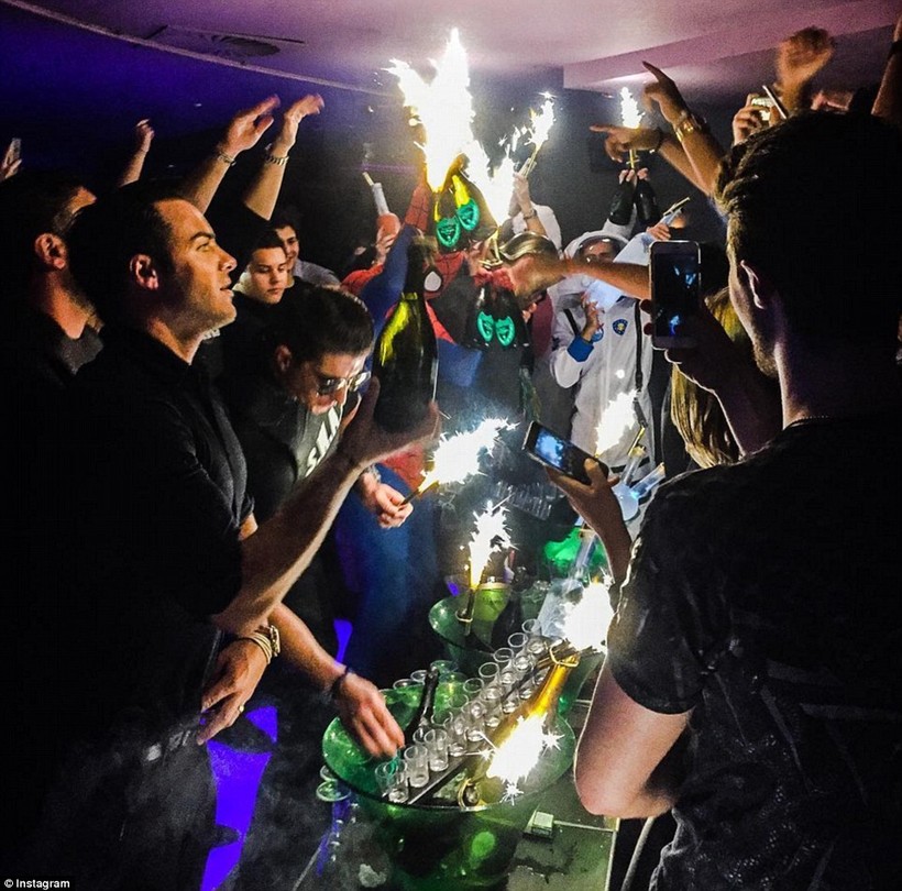 Nicky Kaufman thể hiện tình yêu của mình với loại rượu Champagne đắt đỏ bằng hình ảnh hứng rượu từ chai Veuve Clicquot 15l vào miệng.