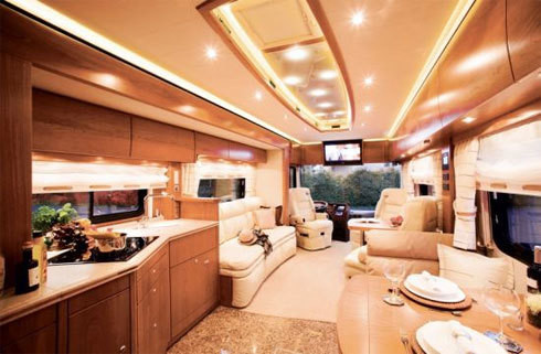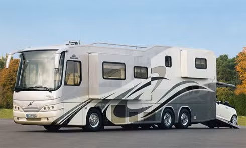 Ngôi nhà lưu động này còn chứa được cả một chiếc xe hơi. Không gian sống gồm phòng ngủ, phòng tắm, phòng khách, phòng bếp và tất cả đều là những trang thiết bị hạng sang. Giá bán của motorhome này khoảng 1,5 triệu USD, tương đương 3,3 tỷ đồng.