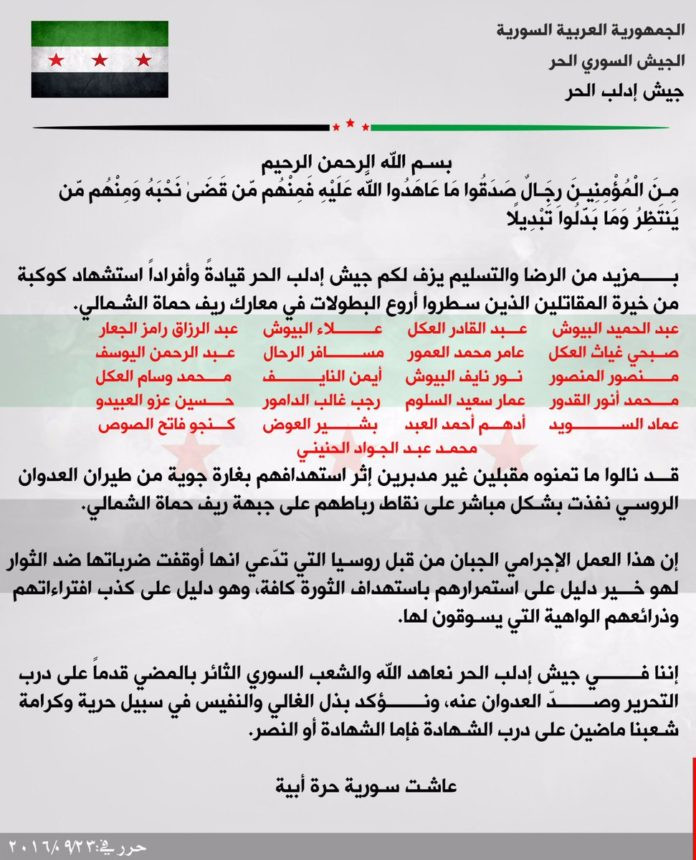 Tất cả các chiến binh thiệt mạng là người từ Kafr Na-banh, một thị trấn ở trung tâm của tỉnh Idlib.