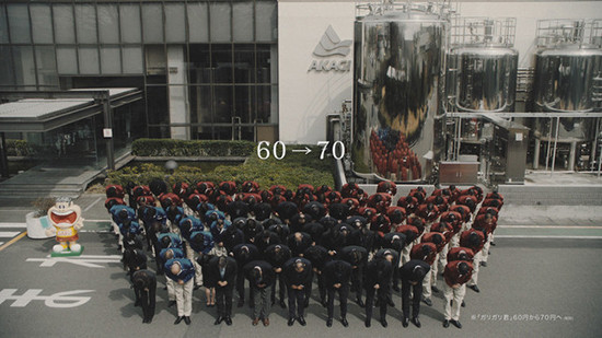 Khoảng 100 người, đứng đầu là giám đốc công ty Akagi Nhật Bản đã cúi gập người trong một video xin lỗi người tiêu dùng vì đã tăng giá kem thêm 2.000 đồng tiền Việt, sau khi giữ giá suốt... 25 năm.