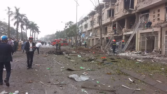 Thời điểm 15h40, ghi nhận tại hiện trường, hậu quả vụ nổ vô cùng kinh hoàng, người dân nhận xét không khác gì một vụ nổ bom. Thời điểm PV Dân trí có mặt là khoảng 20 phút sau khi vụ nổ xảy ra, mùi khói vẫn khét lẹt.