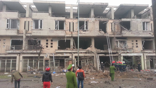 Lực lượng chức năng đang nỗ lực cứu hộ cứu nạn và truy tìm nguồn nổ. Ghi nhận một số chiến sĩ công an đang đào một gốc cây trước cửa ngôi nhà số 15 TT9.