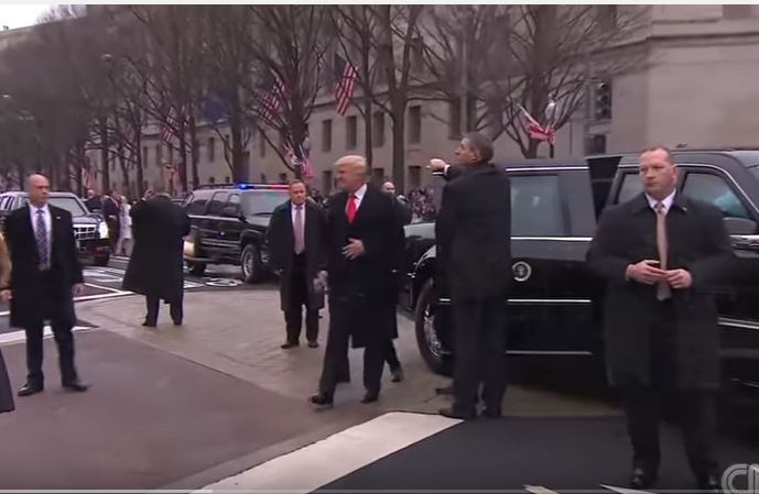 Cuộc đi bộ được bắt đầu vào khoảng 3 giờ chiều ngày 20/1 theo giờ Mỹ khi ông Trump cùng vợ và con út bước ra khỏi chiếc xe bọc thép chuyên phục vụ Tổng thống Mỹ.