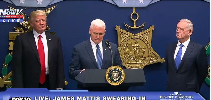 Tổng thống Donald Trump đã có bài phát biểu, tham gia lễ tuyên thệ tại trụ sở quân đội Mỹ của Bộ trưởng Quốc phòng James Mattis.