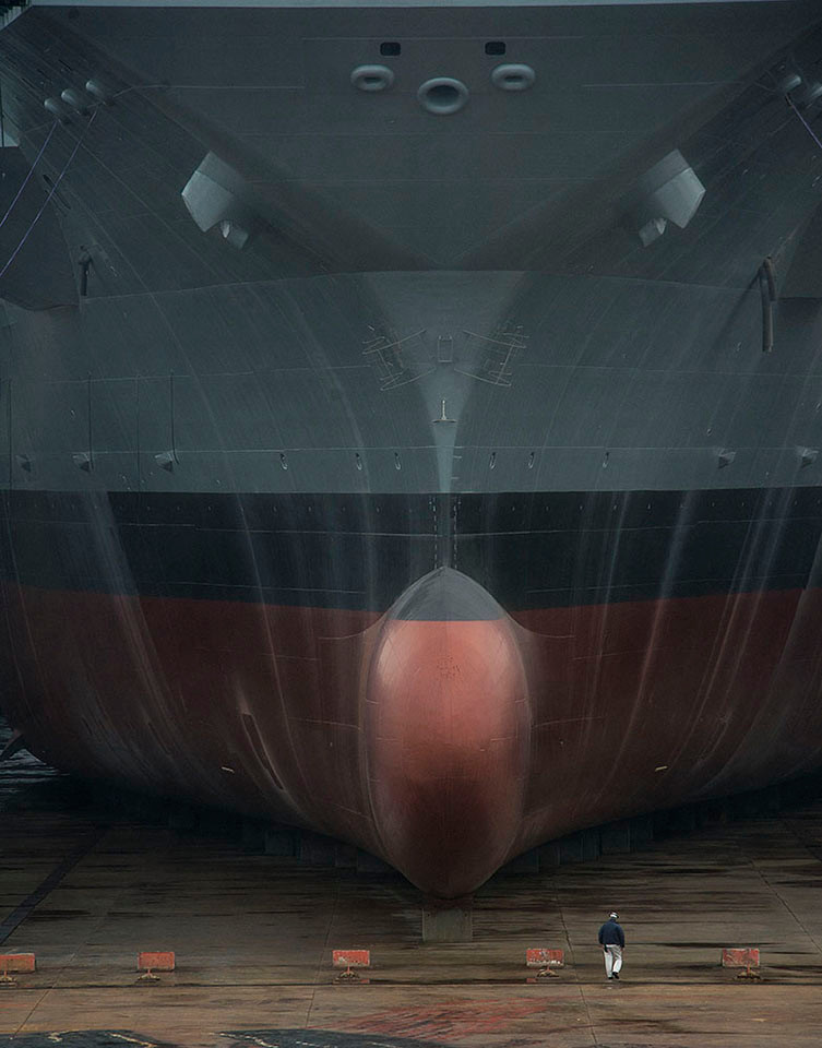 Hình ảnh trên cho thấy sự khổng lồ của USS Gerald R. Ford khi tàu còn nằm trên ụ khô Dry Dock 12 thuộc xưởng đóng tàu Newport News Shipbuilding.