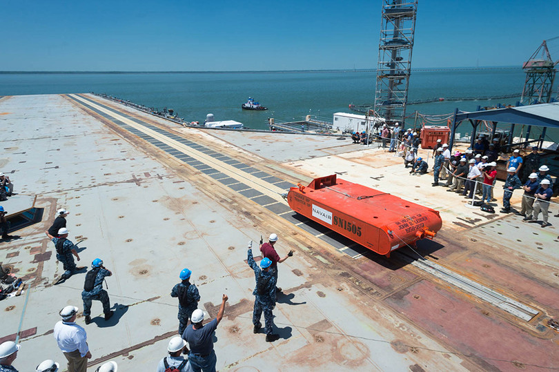 Cú phóng thành công, hệ thống phóng máy bay điện từ có thể gia tốc cho một vật thể nặng hơn 45 tấn lên vật tốc 201 km/h trên cự ly chưa đến 91 m.