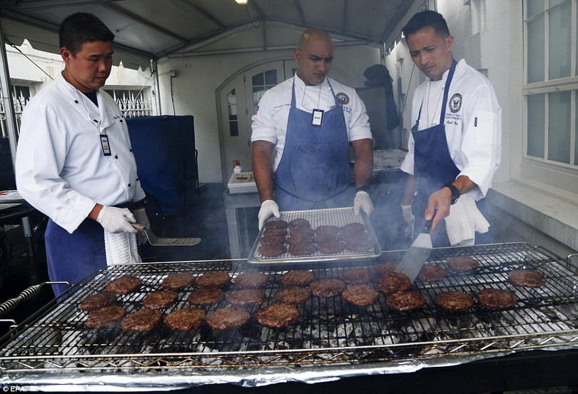 Những đầu bếp đang làm món bánh mì kẹp thịt cho buổi lễ mừng sinh nhật