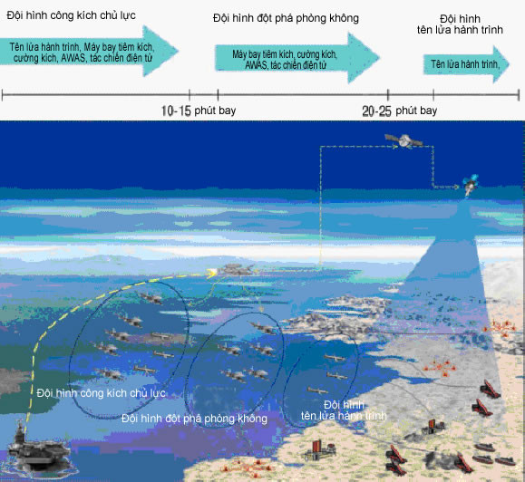 Kinh nghiệm cuộc chiến Vùng Vịnh và Nam Tư cho thấy, các đòn tấn công tập trung với cường độ cao của KQHQ và các chiến hạm mang tên lửa hành trình Tomahawk trở thành yếu tố then chốt trong tác chiến đường không.