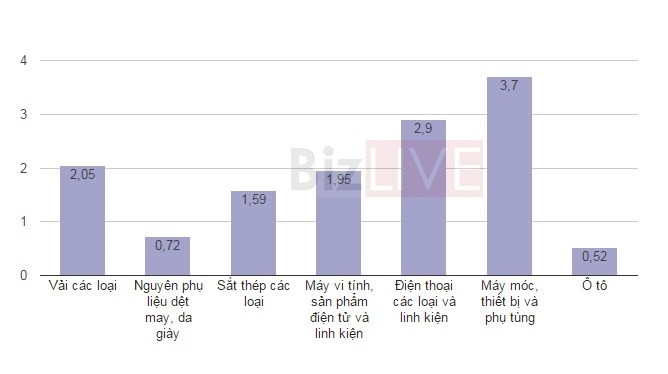 Trong đó, Việt Nam hiện đang nhập khẩu hàng hóa nhiều nhất từ Trung Quốc. Đáng lưu ý, khi lượng hàng hóa Việt Nam xuất khẩu sang nước này đạt 6,2 tỷ USD thì ở chiều ngược lại, con số nhập khẩu lên tới 19,84 tỷ USD.