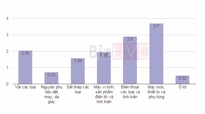 Trong đó, Việt Nam hiện đang nhập khẩu hàng hóa nhiều nhất từ Trung Quốc. Đáng lưu ý, khi lượng hàng hóa Việt Nam xuất khẩu sang nước này đạt 6,2 tỷ USD thì ở chiều ngược lại, con số nhập khẩu lên tới 19,84 tỷ USD.