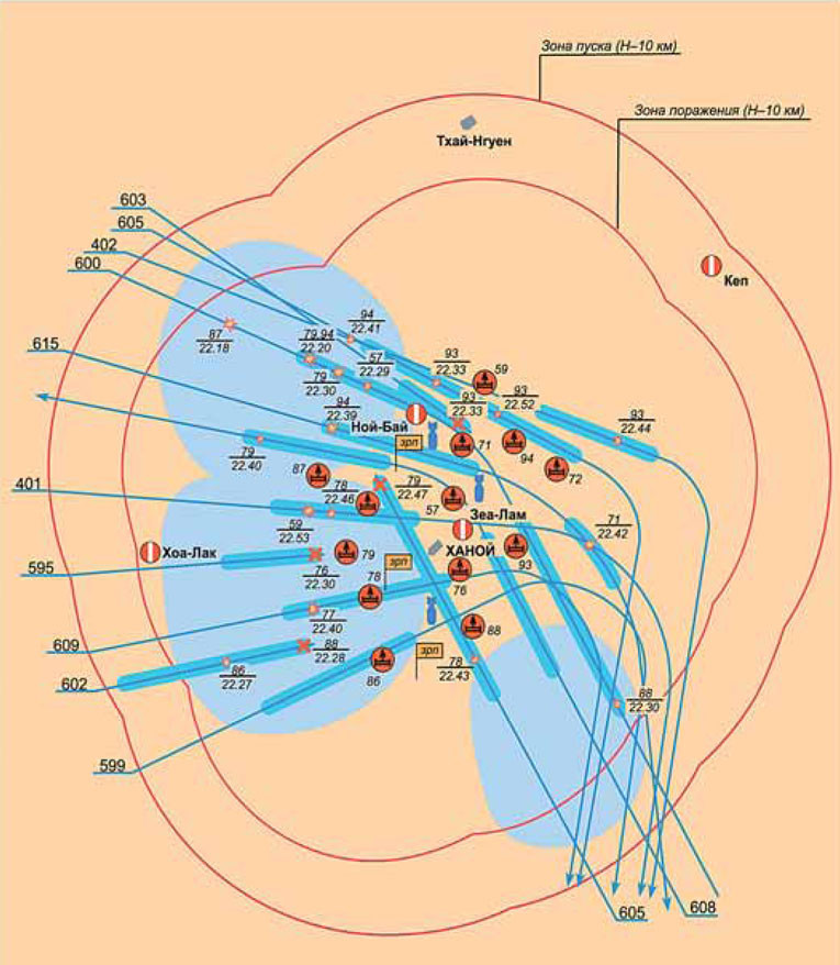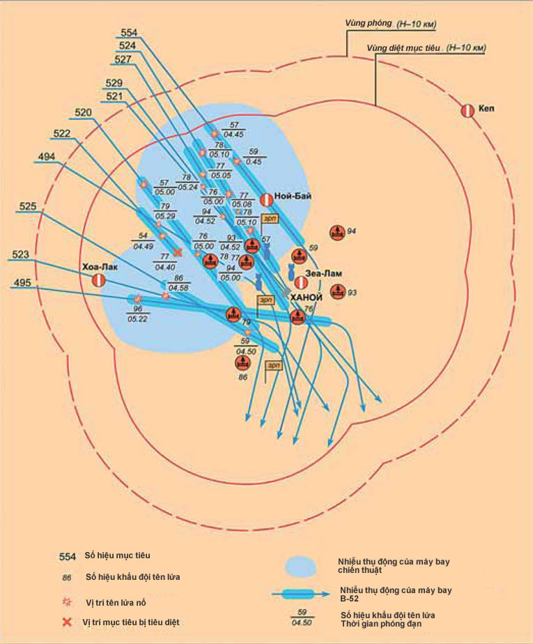 Trận đánh đạt hiệu quả cao nhất của bộ đội tên lửa Việt Nam trên bầu trời Hà Nội là ngày 26.12.1972 Thời gian không kích vào lúc 22.15 đến 23.24. Tham gia không kích vào thủ đô Hà Nội có 80 máy bay, trong đó có 36 chiếc B-52. Mục tiêu của cuộc không kích nhằm vào sân bay Gia Lâm, ga xe lửa Đông Anh, Yên Viên về phía Tây thành phố Hà Nội và một số khu vực nằm về phía Nam cách trung tâm Hà Nội 8-10 km. Cuộc không kích của máy bay ném bom chiến lược được tiến hành từ 3 hướng: hướng Tây Bắc với dải ném bom kéo dài 10 km, hướng tây - 15 km, hướng đông nam - 10 km. Thời gian toàn bộ cuộc không kích kéo dài 24 phút, mật độ không kích khoảng 1,5 máy bay mỗi phút.