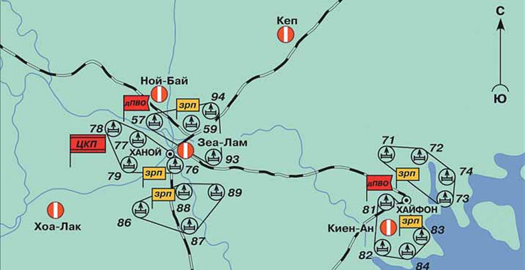 Các trận địa tên lửa bị tấn công dữ dội bằng bom nổ phá mảnh, bom bi, tên lửa chống radar "Shrike", khiến 6 tiểu đoàn tên lửa tạm thời mất khả năng tác chiến. Trong đó có các trang thiết bị bị phá hủy hoàn toàn bao gồm: ba anten PA-11 và PA-12, một cabin đài radar, 5 máy phát điện DES-75, 9 bệ phóng tên lửa, 15 tên lửa bị hư hỏng hoàn toàn, một đài chỉ huy, một máy kéo ATS-59, trong 3 tiểu đoàn các đường dây cáp bị hư hỏng nặng