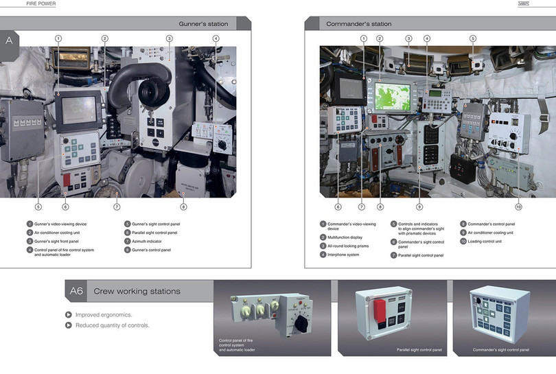 Pháo thủ được sử dụng một kính ngắm đa kênh, trưởng xe có được kính ngắm toàn cảnh có ổn định, hệ thống quan sát, giám sát bằng video xung quanh xe, hệ thống điều khiển hỏa lực xe tăng tự động cho phép phát hiện, xác định và tiêu diệt mục tiêu tại chỗ hoặc đang cơ động bất cứ thời gian nào ngày hay đêm.