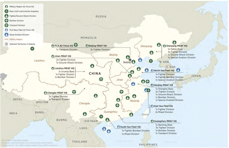 Trong điều kiện đặc thù của không gian chiến trường, khu vực các trung đoàn phía bắc cận kề với các nguy cơ tiềm năng xung đột trên khoảng cách không lớn, khoảng hơn 200 km đến hơn 400 km tới đảo Hải Nam. Trên vùng biên giới với Việt Nam có 3 sư đoàn không quân ở Thành Đô và Quảng Châu, đảo Hải Nam có tới 2 sư đoàn không quân. Trung Quốc cũng là nước sở hữu tới 1200 tên lửa đạn đạo tầm gần.