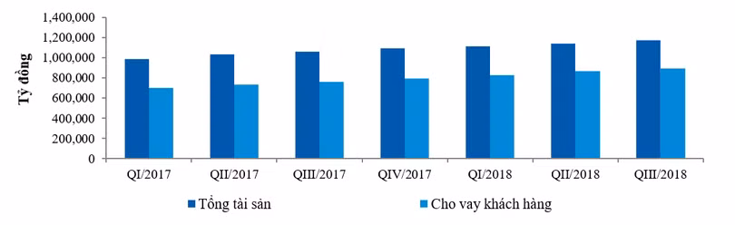 | Tính đến 30/9/2018, tổng tài sản của VietinBank đạt 1.173 nghìn tỷ đồng, tăng 7,1% so với cuối năm 2017 và tăng 10,4% so với cùng kỳ năm trước. Tiền gửi khách hàng tại thời điểm 30/9/2018 đạt 826 nghìn tỷ đồng, tăng 9,7% so với cuối năm 2017 và tăng 13,9% so với cùng kỳ năm trước. Dư nợ cho vay khách hàng đạt 892 nghìn tỷ đồng, tăng 12,8% so với cuối năm 2017 và tăng 16,8% so với cùng kỳ năm trước, trong đó dư nợ khách hàng bán lẻ và khách hàng vừa và nhỏ tăng trưởng tích cực. Cơ cấu dư nợ cải thiện theo hướng tăng dư nợ VNĐ, giảm tỷ trọng dư nợ ngoại tệ, dư nợ cho vay trung dài hạn tăng tốt.