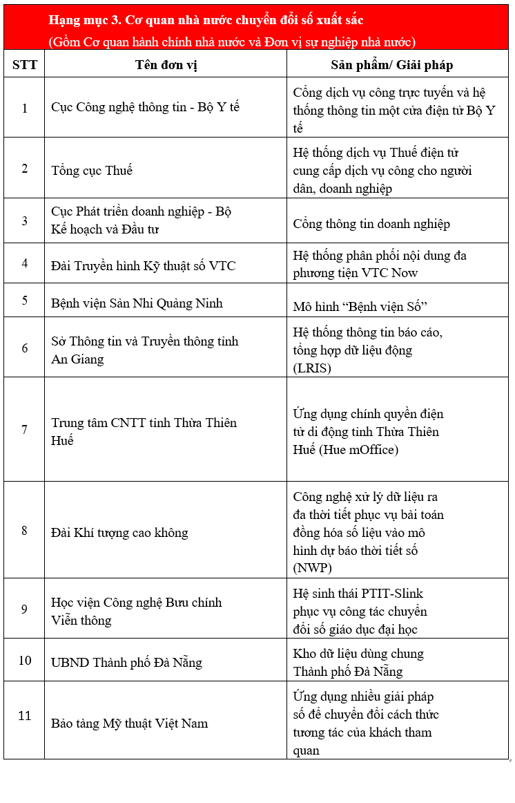 Hạng mục 3: Cơ quan nhà nước chuyển đổi số xuất sắc