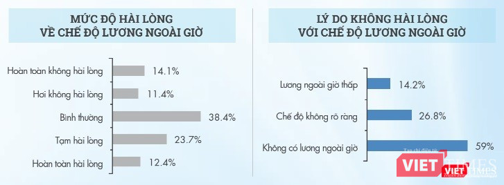 Theo khảo sát, có đến 59% nhân lực ngành CNTT chưa nhận được chế độ lương làm thêm ngoài giờ, hơn 25% người tham gia khảo sát cho biết họ cảm thấy không hài lòng với việc không nhận được lương ngoài giờ này.