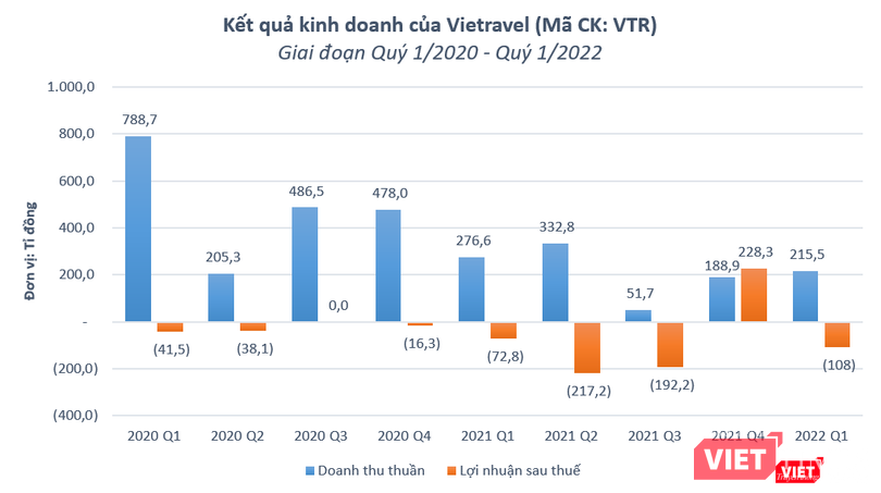 Khoản lỗ sau thuế 108 tỉ đồng trong quý 1/2022 đã nâng số lỗ sau thuế lũy kế của VTR tăng lên mức 293,5 tỉ đồng tại ngày 31/3/2022. Vốn chủ sở hữu của công ty lữ hành này cũng bị ăn mòn xuống mức âm hơn 100 tỉ đồng.