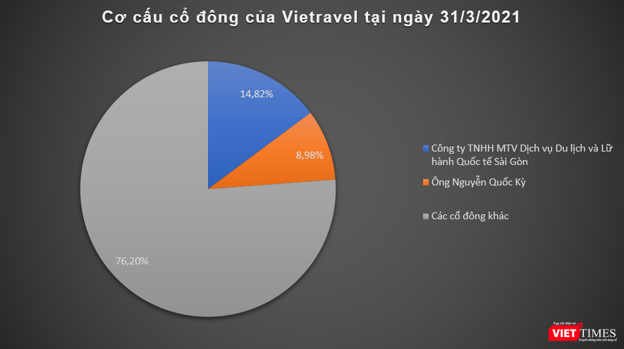Tại ngày 31/3/2021, Vietravel có vốn điều lệ đạt mức 172,9 tỉ đồng, trong đó Công ty TNHH MTV Dịch vụ Du lịch và Lữ hành Quốc tế Sài Gòn là cổ đông lớn nhất góp hơn 25,6 tỉ đồng, tương đương tỷ lệ sở hữu vốn 14,8%. Theo sau là Chủ tịch HĐQT Nguyễn Quốc Kỳ với tỷ lệ sở hữu 8,98%, còn lại là các cổ đông khác.