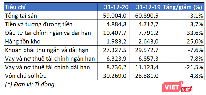 Tính đến ngày 31/12/2020, tổng tài sản và vốn chủ sở hữu của Viettel Global đạt lần lượt là 59.004 tỉ và 30.269 tỉ đồng.
