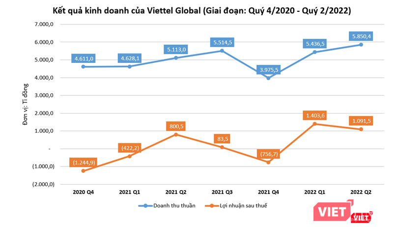 Tổng Công ty cổ phần Đầu tư Quốc tế Viettel (Viettel Global - Mã CK: VGI) vừa công bố kết quả kinh doanh hợp nhất quý 2 năm 2022 với doanh thu đạt 5.850,4 tỉ đồng, tăng 14% so với cùng kỳ năm trước.