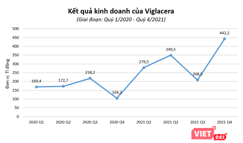 Tổng Công ty Viglacera – CTCP (Mã CK: VGC) vừa công bố kết quả kinh doanh quý 4/2021 với lợi nhuận sau thuế hợp nhất đạt 442,2 tỉ đồng, cao gấp 4 lần so với cùng kỳ quý 4/2020.