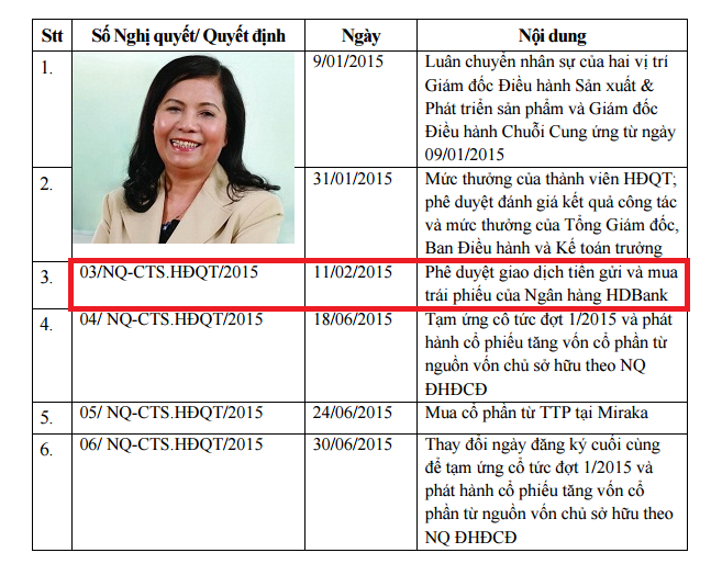Như vậy có thể thấy, trên thực tế việc CTCP Sữa Việt Nam bỏ hàng trăm tỷ đồng mua trái phiếu dài hạn NHTM HDBank đã diễn ra từ rất lâu trước khi HĐQT Vinamilk ban hành Nghị quyết số 03/NQ-CTS.HĐQT/2015 (tất nhiên, thời điểm Nghị quyết ra đời vẫn kịp thời trước Đại hội cổ đông).