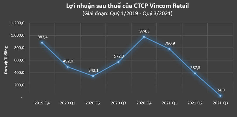 CTCP Vincom Retail (MCK: VRE) vừa công bố kết quả kinh doanh quý 3/2021 với khoản lợi nhuận sau thuế đạt 24 tỉ đồng, tương đương 4,2% cùng kỳ năm trước. Kết quả kinh doanh này cũng cho thấy những tác động của đợt giãn cách xã hội kéo dài do Covid-19 tới VRE.