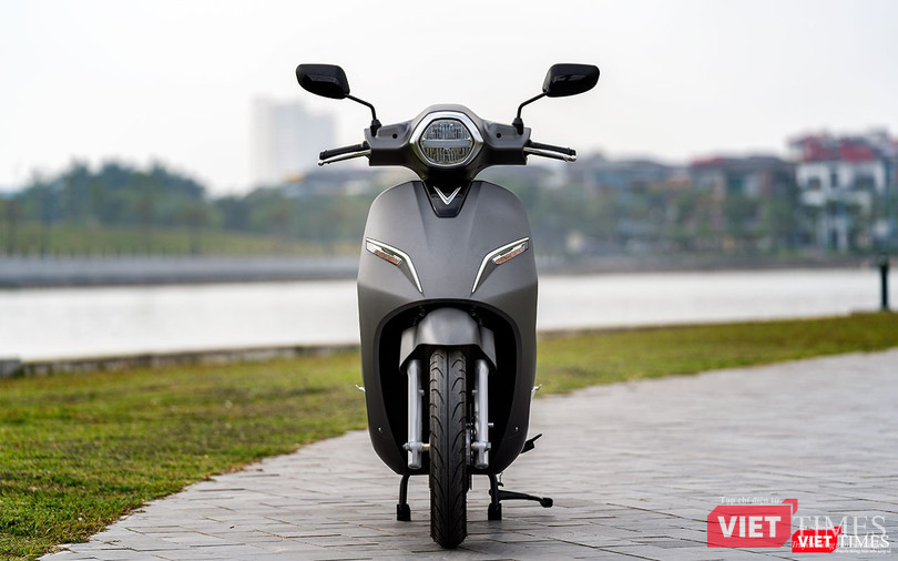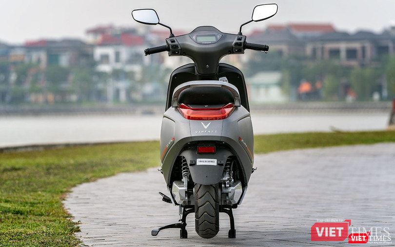Dẫu sao, hãng cũng đã khéo léo lồng vào đó một số chi tiết tuy nhỏ nhưng đủ để nhận ra đây là xe máy điện của thương hiệu VinFast như đèn xi-nhan LED với dải trang trí giả kim loại hai bên tạo thành hình chữ V và phía đuôi xe ngoài logo còn có thêm cả dòng chữ VINFAST rất nổi bật.