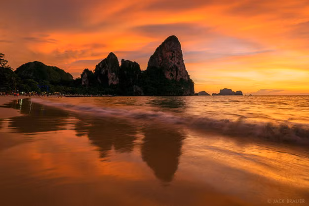 Bạn hãy nhớ lấy tất cả những chi tiết sống động đó vào bức ảnh selfie của mình vào lúc hoàng hôn ở vịnh Railay xinh đẹp và yên bình.