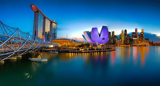 Lấy ý tưởng từ khái niệm âm dương, chiếc cầu bộ hành dài 280m ở vịnh Marina có hình dạng xoắn kép hết sức độc đáo. Vì thế khi đặt chân lên kiệt tác kiến trúc đó, du khách nào cũng muốn lưu lại kỷ niệm.