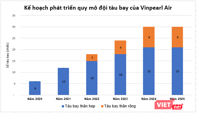 Từ năm 2020 - 2025, trung bình mỗi năm Vinpearl Air sẽ đựa vào khai thác thêm 6 máy bay/năm. Đến năm 2025, đội bay của hãng sẽ đạt 30 chiếc.